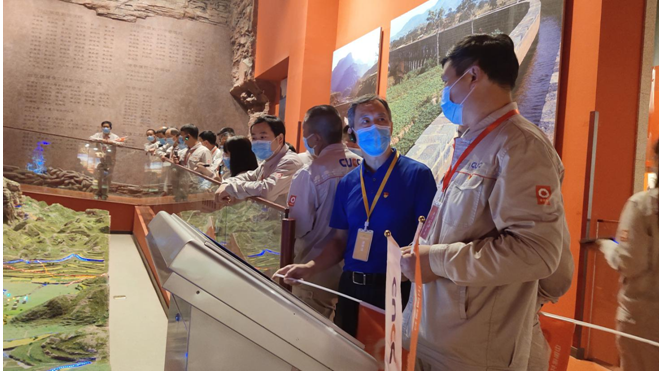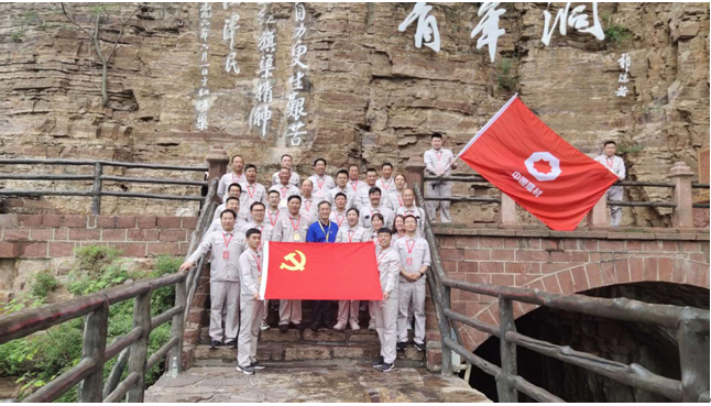 怀着崇敬之情,党员们重走红旗渠工程路线,瞻仰了修渠英雄雕塑、团结洞、青年洞等修渠遗迹;感受到了整个建渠过程的艰辛,一锤一钎,凿通隧道,架设桥梁,一往无前。走“红飘带”“水长城”,现场教学让学员们更充分的体验了林县人民历时十年在太行山上修建1500公里的人工天河是何等的艰辛,学员们对这条在困难时期修建的人工天河表示震撼,充满了无限敬畏。青年洞,是红旗渠的代表性工程。学员们登上总干渠渠岸,行走在不足两米宽的渠岸上,向前看不见头,向后看不到尾,抬头是陡立的峭壁,俯首是数丈高的悬崖。不经意间,已与英雄擦肩而过,号角嘹亮、踏遍青山、推独轮车等英雄的形象已凝固为雕像,融入太行红岩。蓦然抬头,青年洞就在眼前,这里昭示青春,也展示巍峨。