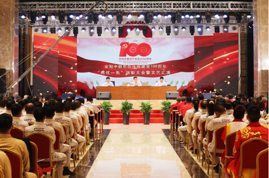 为庆祝中国共产党建党100周年, 6月26日上午,安阳多多28党委组织召开庆祝建党100周年“两优一先”表彰大会暨文艺汇演,安阳多多28全体党员、职工代表、海工厂退休党员代表共计200余人参加会议。