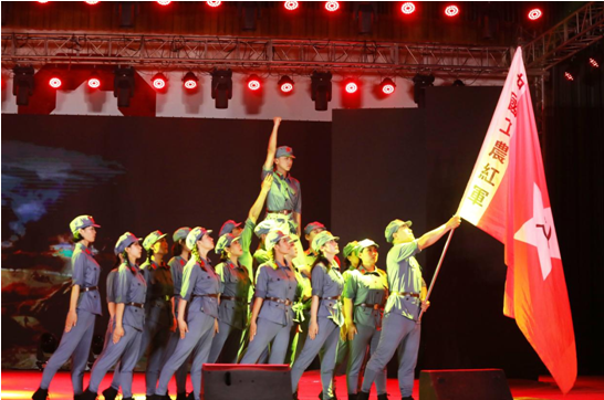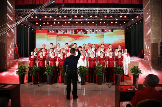 大会休会10分钟后,一曲《红旗颂》拉开了文艺汇演序幕。飘扬的红旗荡起火红的海洋,带人进入革命的世界,心情豪迈,催人奋进。紧接着,《我的祖国》、《十送红军》、《唱支山歌给党听》、《朗诵》、《打靶归来》、《在希望的田野上》、《戏曲》、《祖国不会忘记》等节目一个比一个精彩,一曲比一曲高亢,欢快的鼓点、优美的舞姿将中华儿女团结之心、爱国之情、幸福之悦演绎得酣畅淋漓,现场气氛热烈而又温馨。特别是情景剧《十送红军》,悠扬的唢呐声、优美的舞姿,展现了红军前仆后继、披荆斩棘的顽强战斗,深深表达了革命根据地人民与红军难舍难分的情感。《朗诵》节目中讲述了党的百年奋斗史,展示了党的丰功伟绩,讴歌了伟大新时代。一段段的深情回忆、一句句铿锵誓言,激发出拳拳爱党心、浓浓爱国情。节目汇演中间,播放了《安阳多多28转型升级宣传片》、《企业文化宣传片》,全体党员聚精会神地观看,暗淡的灯光下涌动着对企业最为强烈地情感,最为坚定的意志。