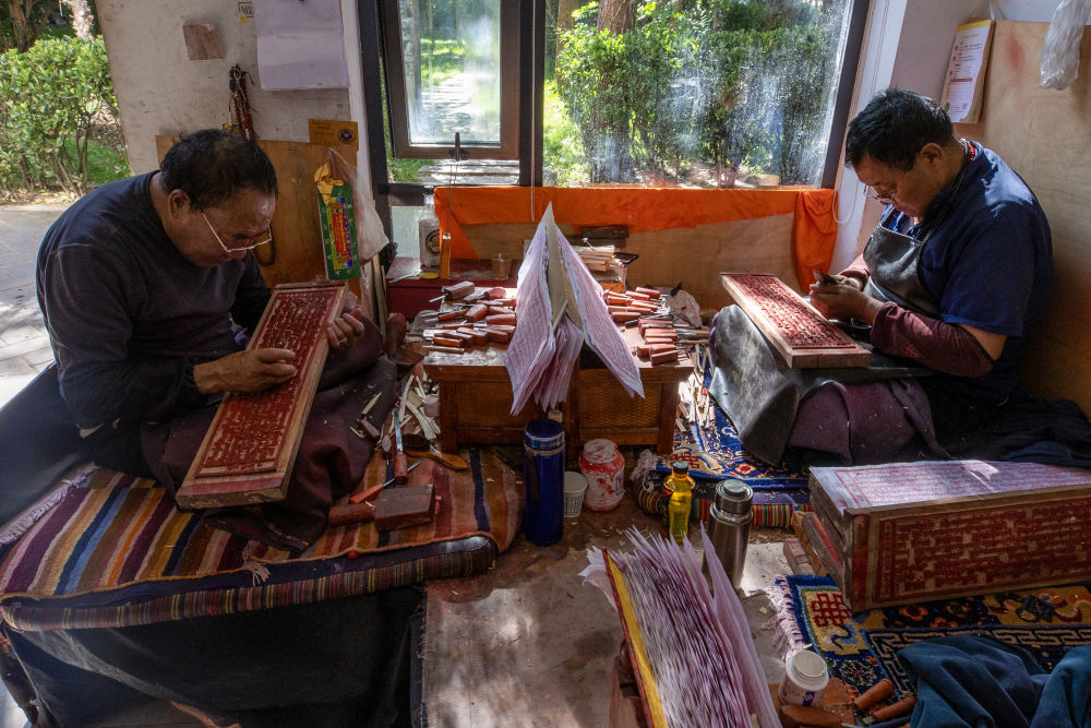 ↑ 8月6日,雕刻师在工作中。西藏雪巴康雕版印刷制作技艺入选西藏自治区级非物质文化遗产代表性项目名录。