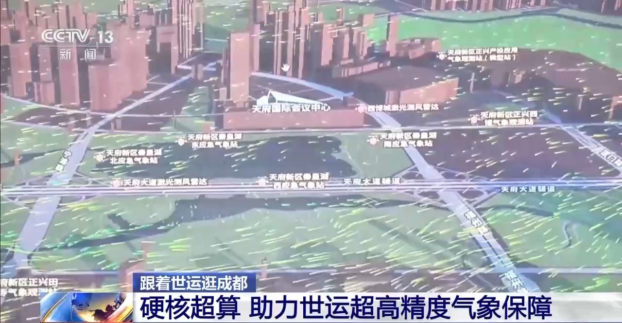 世运会比赛期间,青藏高原气象研究院联合成都市气象局,依托国家超级计算成都中心开展了超高分辨率数值天气预报。常规天气预报能精确到1公里乘1公里的区域,而现在预报精度提升至10米乘10米,实现了从公里级到米级的跨越。